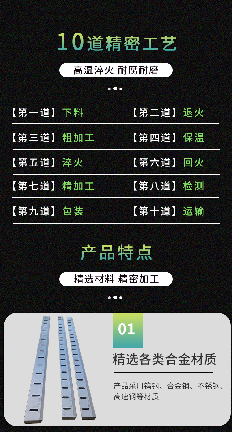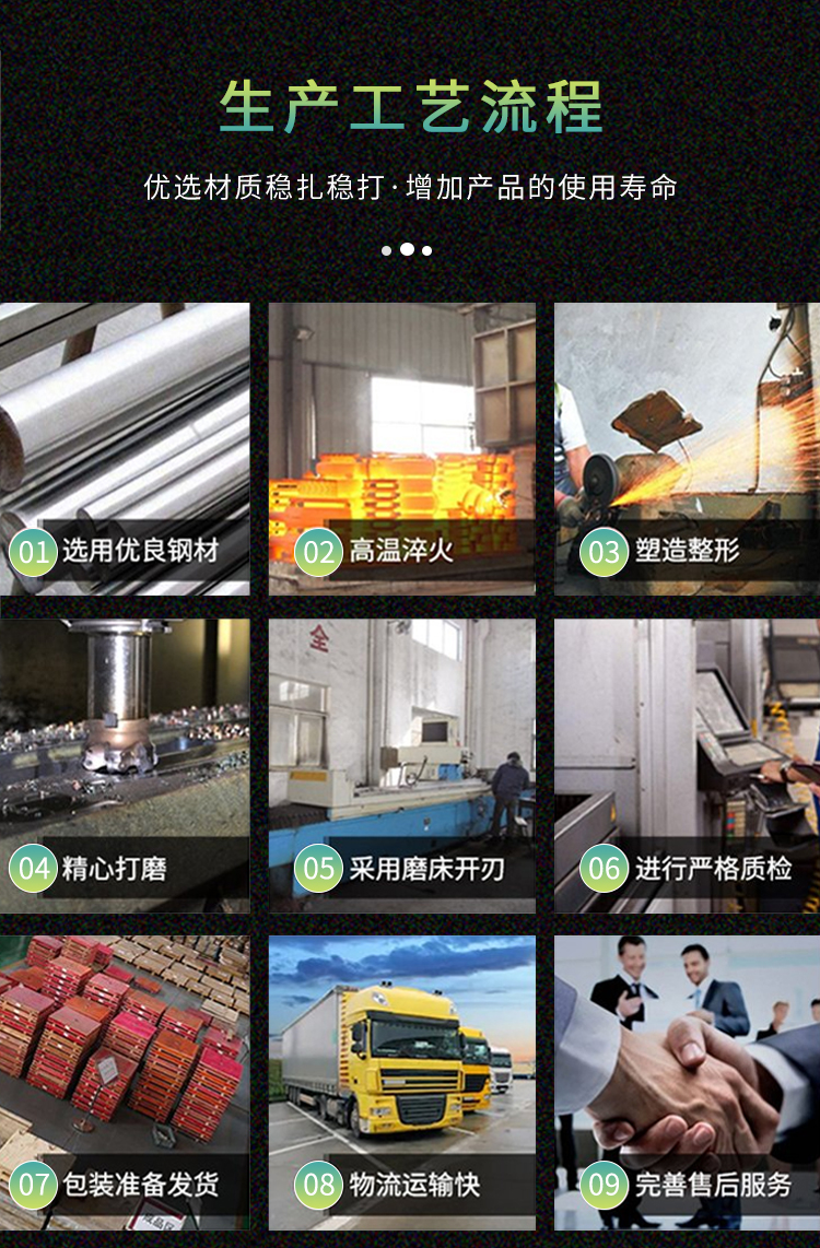 產(chǎn)品材質(zhì):9CrSi、D2、SKD-11、SKH-51、H13等